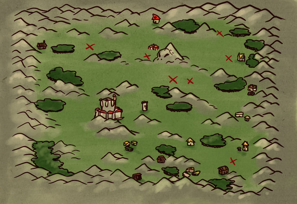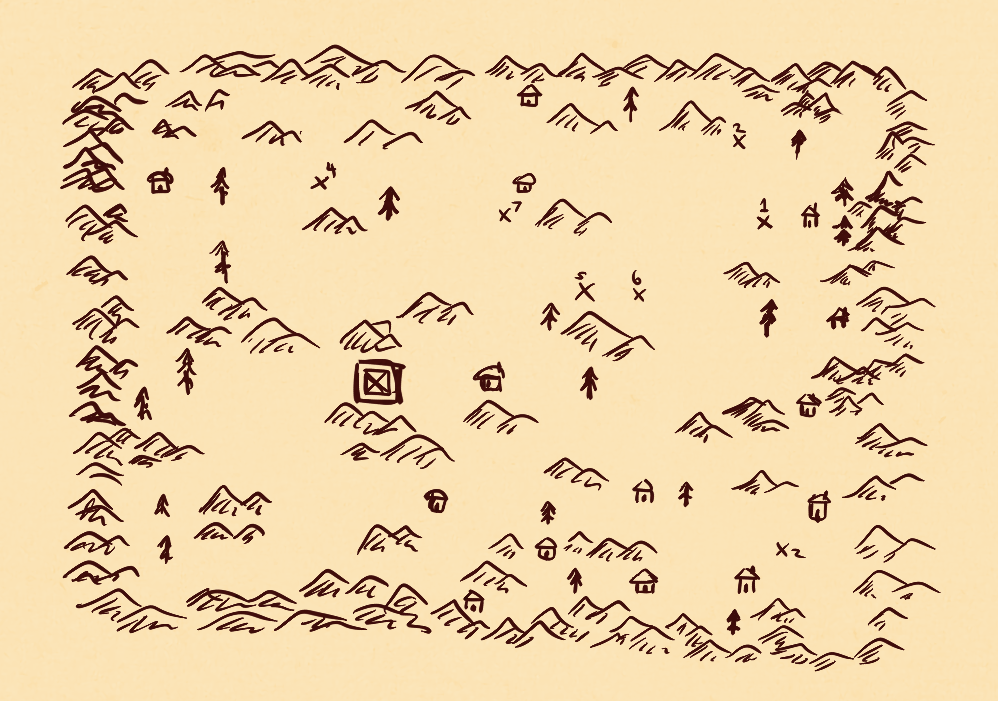Noting that the trees are landmarks is actually helpful, should I need to get my bearings when looking for the Castle. I'm relatively sure that though the dungeons are randomly generated according to the lucky number they will be static on a given play through with it. I'll have to compose a map as I go, whilst also mapping the dungeons. Speaking of which...