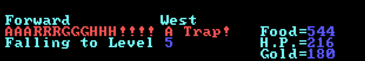 Using on of the traps on Level 5 to get to Level 6, I take 7 damage. It looks like fall damage from traps is equal to the Level you fall to +1 as is. That said, I'm up against threats far, far worse than traps. Finally, its come to this - the nightmare of so many explorers of this labyrinthine dungeon. The dread spectre known only as...