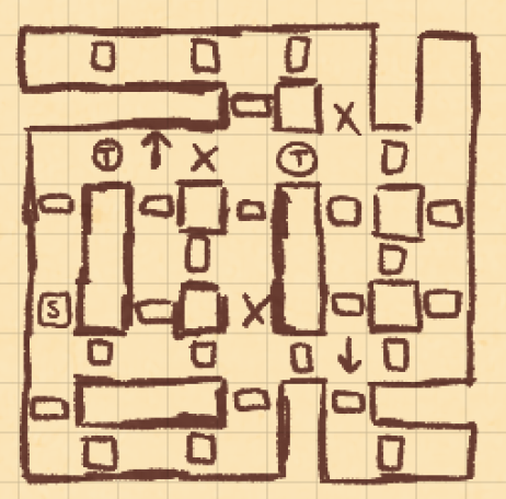 It got me to actually start mapping on grid paper, something I've always been pretty reluctant to do in the past. I've been a little spoiled by automaps. I think automaps are great, especially in realtime games, but I don't know. This was the first time I got out the (digital) pen and paper for it to try to figure out how these places added up so I wouldn't immediately get lost and starve to death. I absolutely would not have survived if I'd just blundered around in the dark for an hour taking the left at every intersection. God, if I hadn't been mapping, I never would have accessed Level 9. It required me to be actively involved if I was going to beat it. Mapping might be a form of friction but goddamn if it isn't part of the gameplay because if I don't pay attention, if I don't familiarise myself with the turnings and landmarks, I'd make a shitty map and not even realise how off target I was getting. If I just have an automap, its easy to go into autopilot and then I wouldn't have felt it was half as satifying.