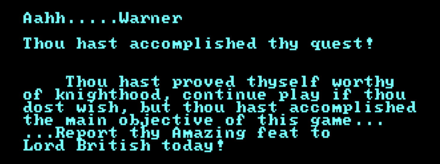 All in all, I had a great time and I'm eager to revisit Ultima 1. I wonder whatever happened to that Mondain guy, it said, knowingly.